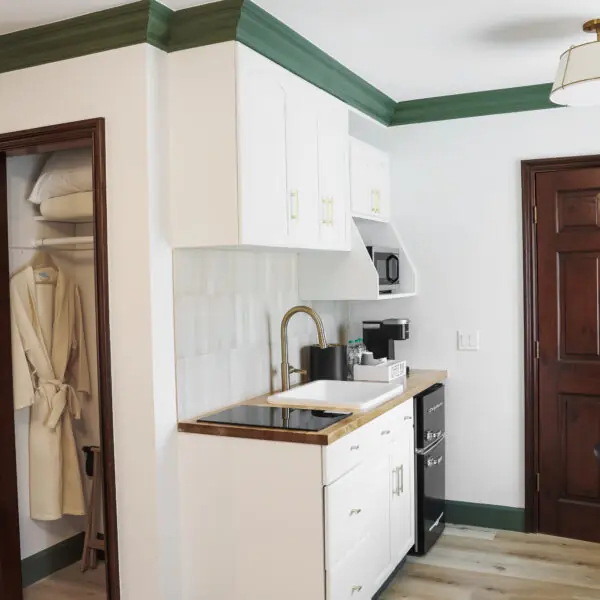 We have four Courtyard Suites — newly renovated King Suites tucked into our cozy courtyard with elegant fire pits and lounge seating. Designed with a warm, Danish-Californian flair, they’re all about comfort and charm. Each suite includes a king bed, microwave, and mini fridge. Step outside to enjoy the peaceful back garden, complete with a gazebo and fireplace. It’s the perfect spot to unwind, and you’re still just a short walk from Solvang’s shops and restaurants.